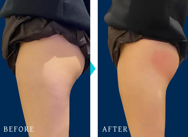 基本的にはありません。脂肪をカップに吸引しながら冷却する為、体質や脂肪の質によりうっ血やあざが出る可能性があります。大事な予定のある直前の施術は避けていただくことを推奨します