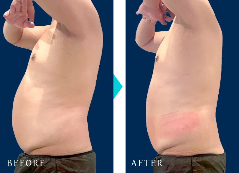 脂肪冷却は脂肪細胞を4℃に保ちます。凍傷は0℃から発症する為、凍傷になる事はまずありません。また皮膚や血管にダメージを与えずに脂肪細胞だけにアプローチしていきます